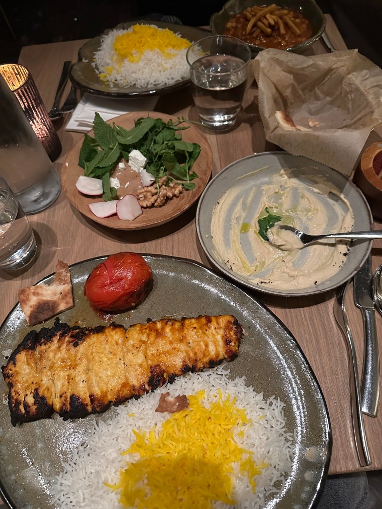 - Rumi’s Kitchen is AMAZING Persian food!!! I’ve only gone for dinner so the lighting has also been a bit dim, but I guess that makes it a good date spot–whether it is with your friends or a special someone! It is a bit on the pricier side, but the portions of the food are pretty massive. I usually order the Chicken Barg which comes with rice, chicken, and a tomato. They also give you additional seasonings if you would like. The Chicken Barg is extremely tender and juicy! The meat just cuts so easily with a knife and it pairs up really well with the rice. I also really like their hummus and pita, so you should definitely get that if possible. It is usually pretty busy so I would book a reservation if possible!