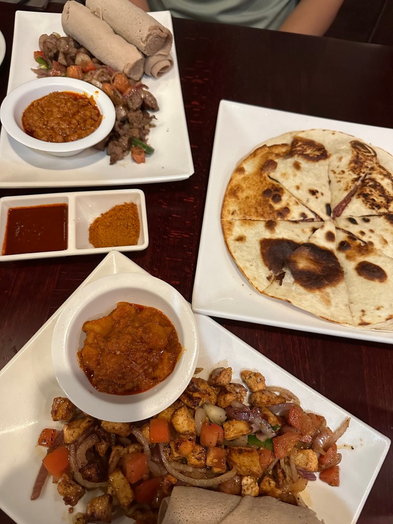 - Desta is super good Ethiopian food in Atlanta! I had never tried Ethiopian food until here and I was blown away. I got the Chicken Tibs which are a traditional Ethiopian food of spiced chicken with vegetables. I ate it with Injera, which is like an Ethiopian sourdough flatbread. The flavors of the dish worked very well together and the servers are also very knowledgeable in terms of their recommendations for food here.